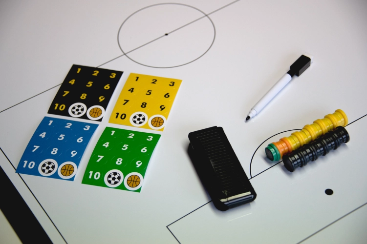 This large magnetic tactical board will be ideal to clearly explain your tactic to your players. It remains easily transportable thanks to its handle. It will be provided with a felt, a sponge and magnets: 11 blue, 11 red, 1 black.