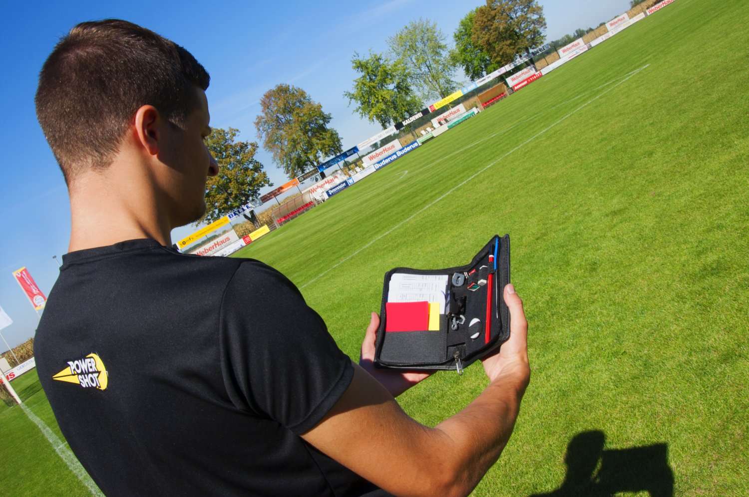 This kit Premium referee kit contains all the elements that an ref needs, from note pads to cartons, including a pen, pencil and eraser and pencil size, a token. All in a leather-like pouch with a zipper.