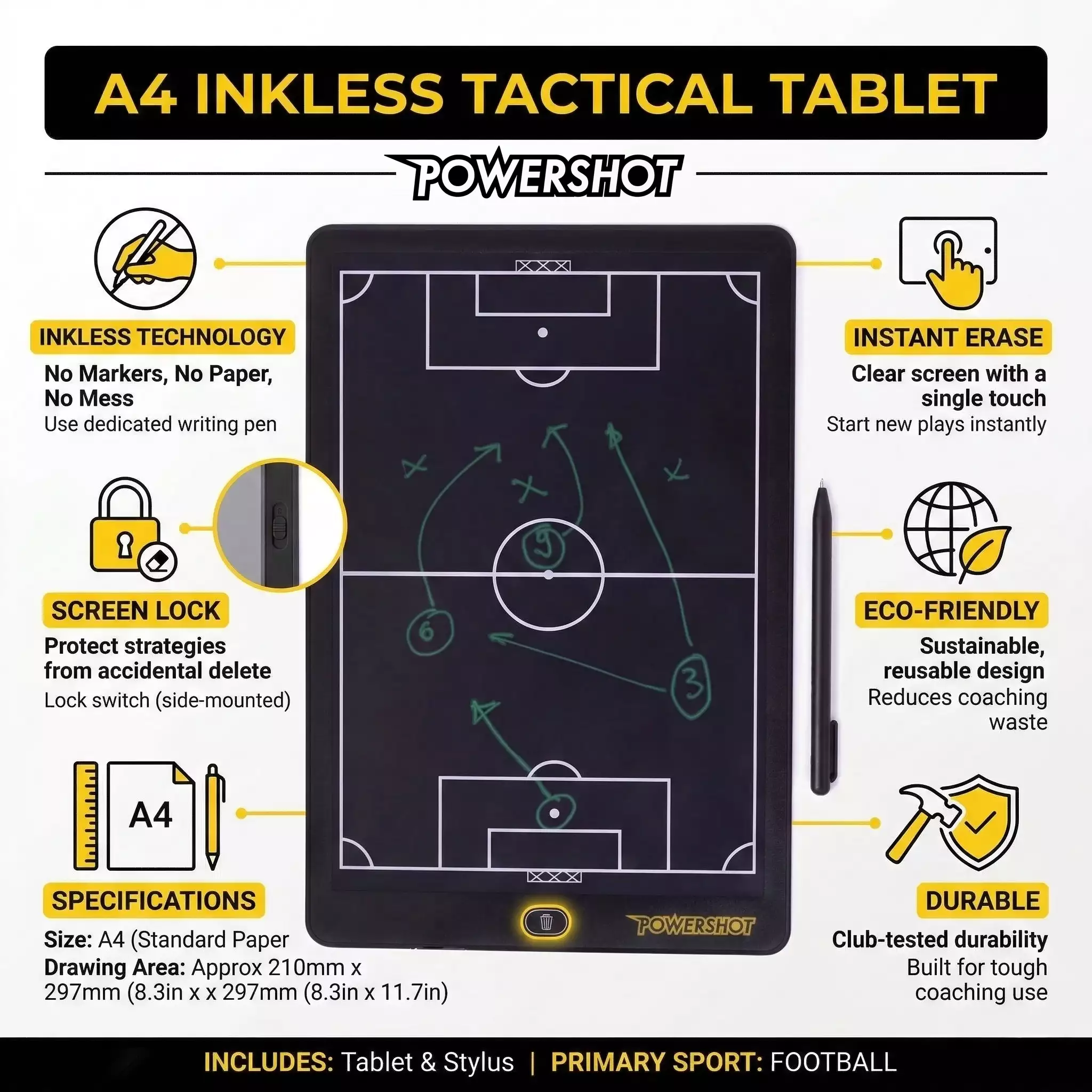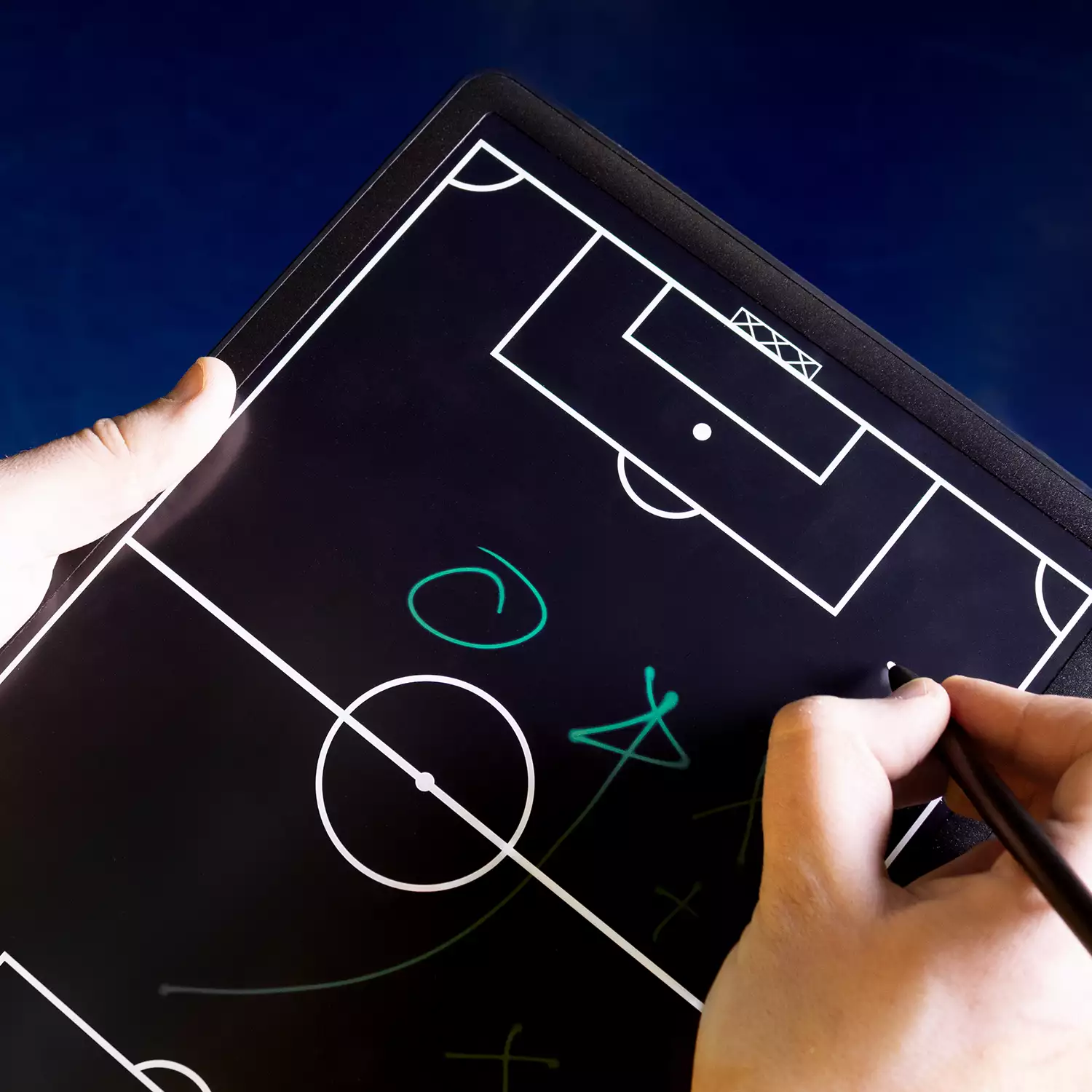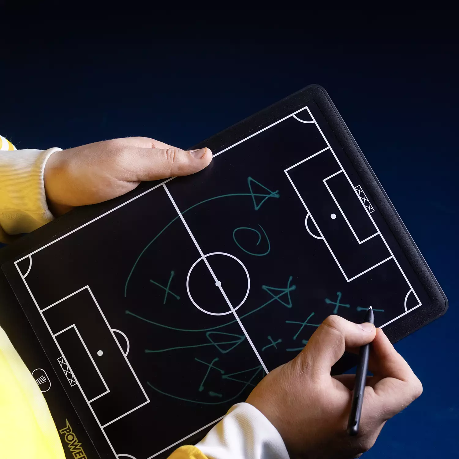 This ink-free tactical tablet will allow you to explain your tactics at any time. The stylus is secured to the tablet. Ability to reuse endlessly! To remove your tactic, simply press the trash button.