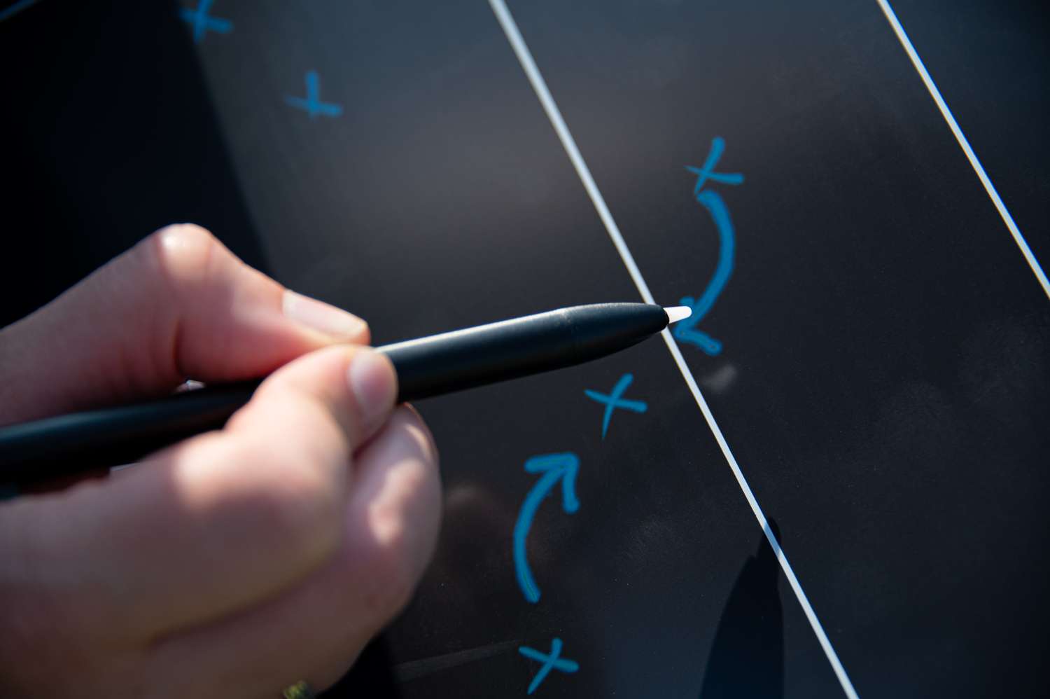 Ink-free tactical tablet. Pen included, which slides directly onto the side of the tablet.