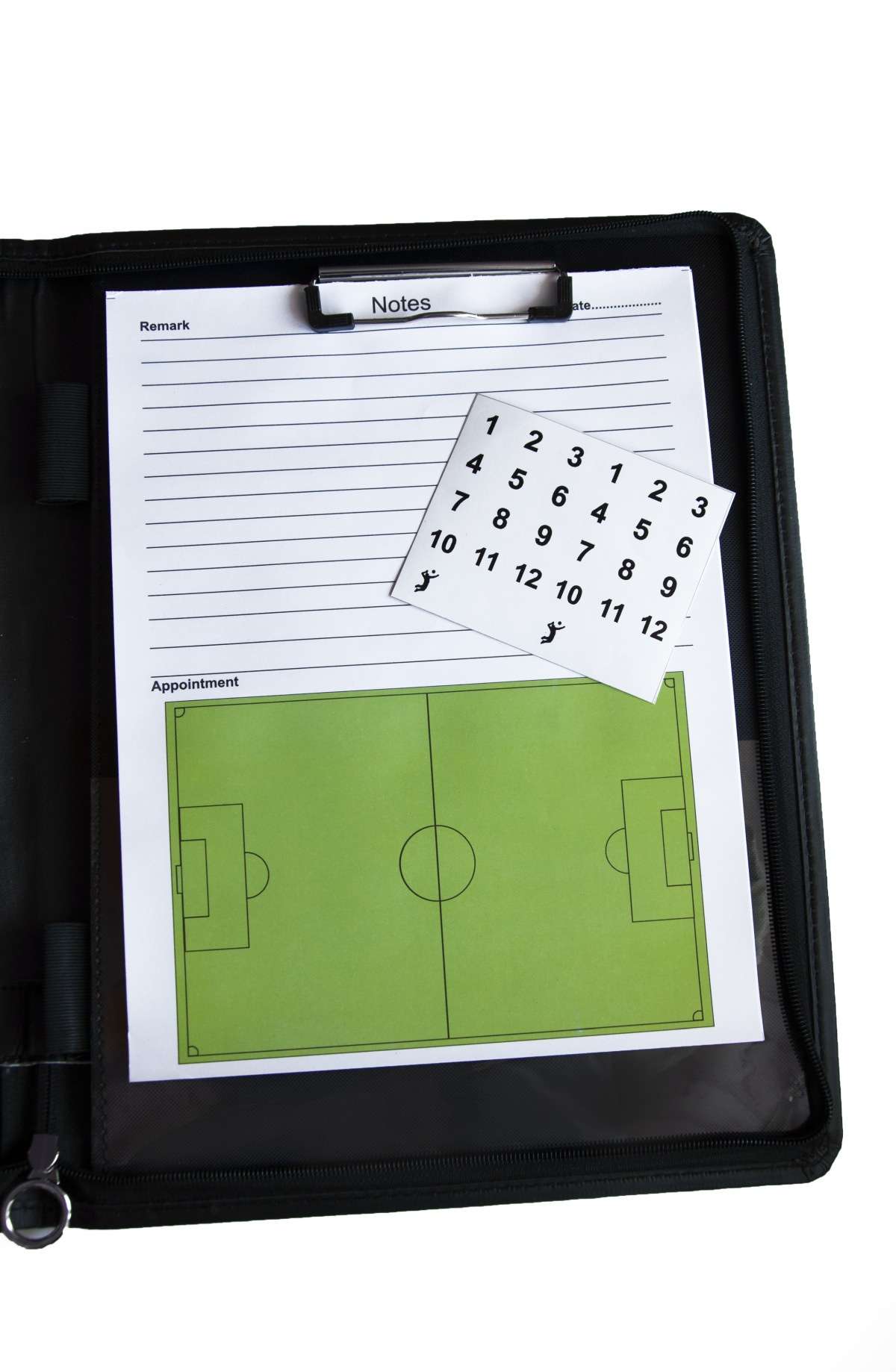 This tactical pocket was created for coaches. It includes a tactical tablet to materialize your tactics, as well as a notebook. All in a pouch closed by a zipper. This pouch will be supplied with a felt, 13 red magnets, 13 blue, 2 yellow and 1 black. These magnets will be numbered for even more precision. Its composition offers a premium design.