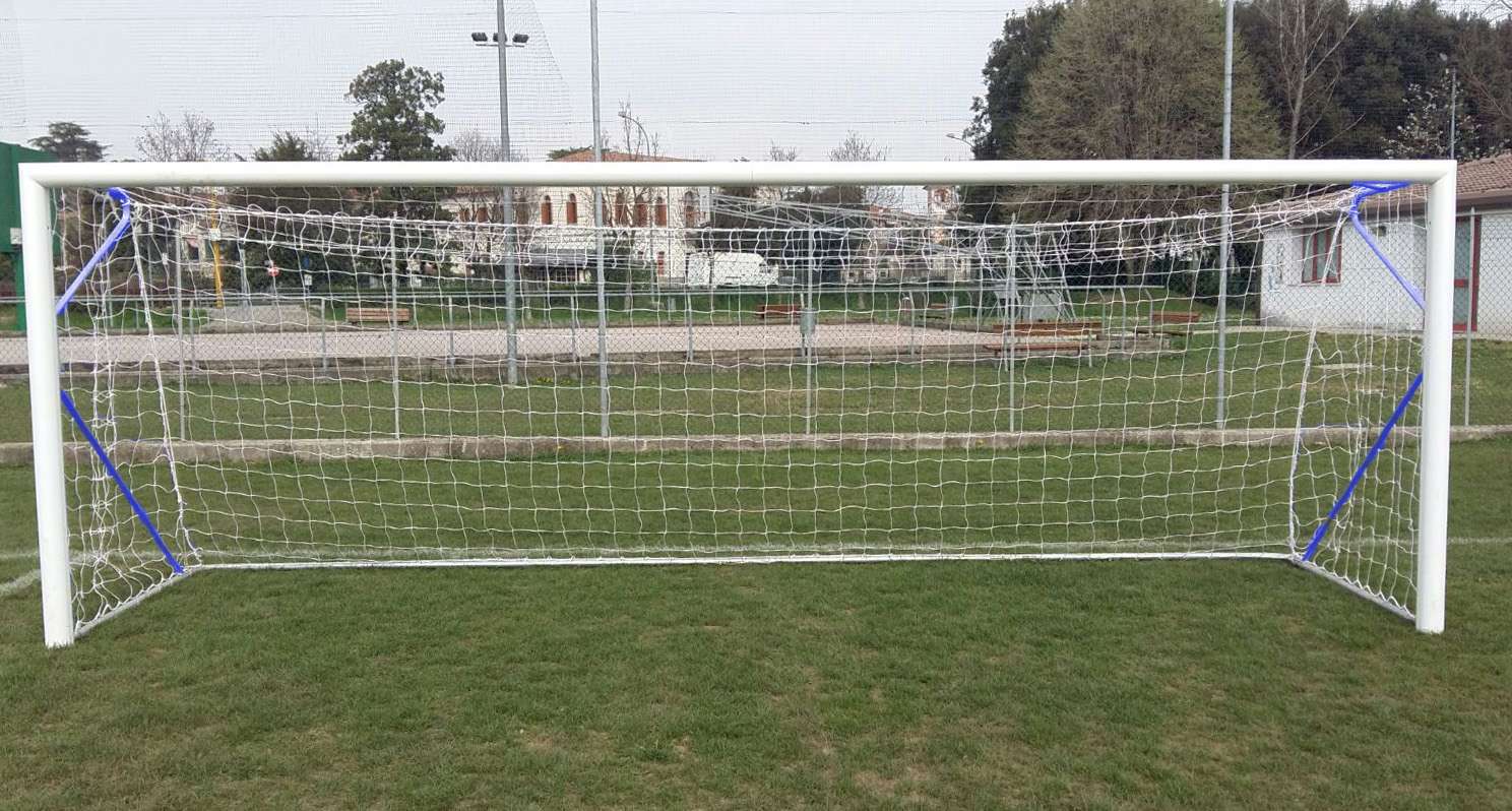 This 8-blue football goal is resistant thanks to its anodized aluminium composition. It complies with EN 748.