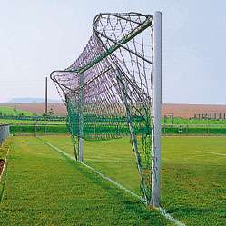 Football goal designed for young players U11 to U13 The 2 posts at the front of the goal (100 x 120 mm) as well as its cross bar are ovoid and are made of aluminium, unlike the rear supports which are made of steel.