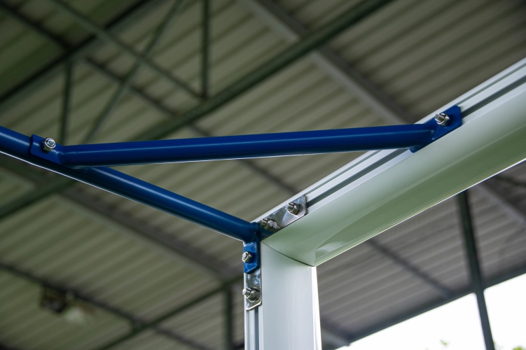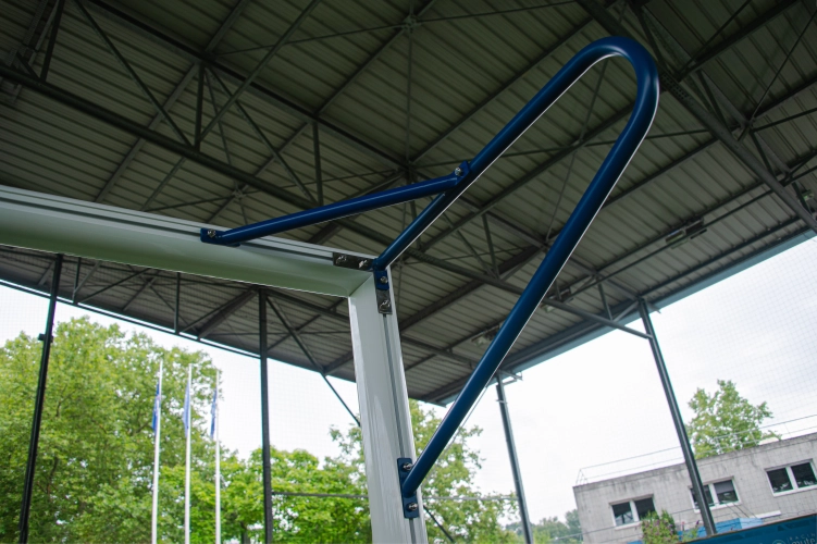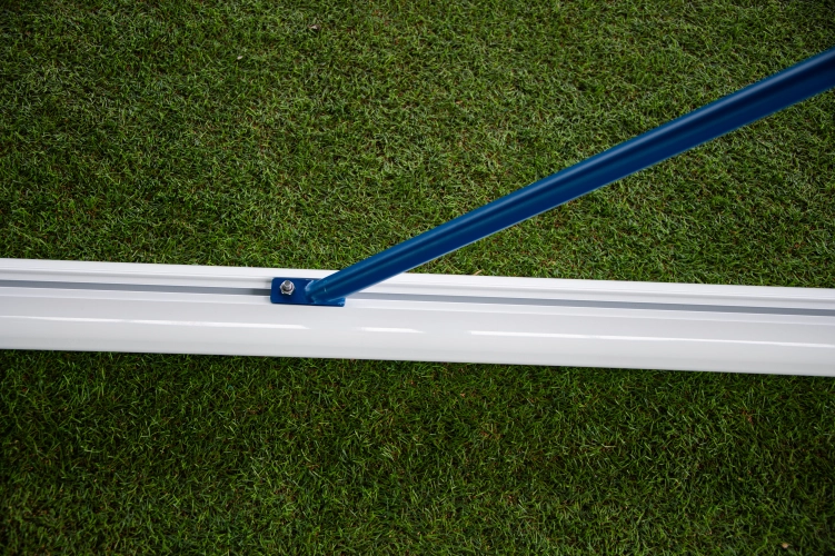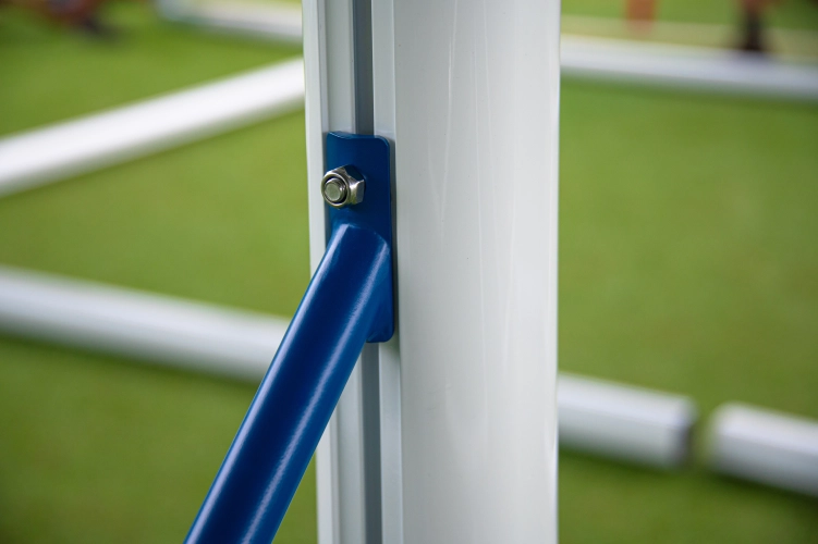 This blue transportable 11 football goal meets EN748 standards. The net is not provided (ref FN1101U). Its anodized aluminium composition makes it durable.