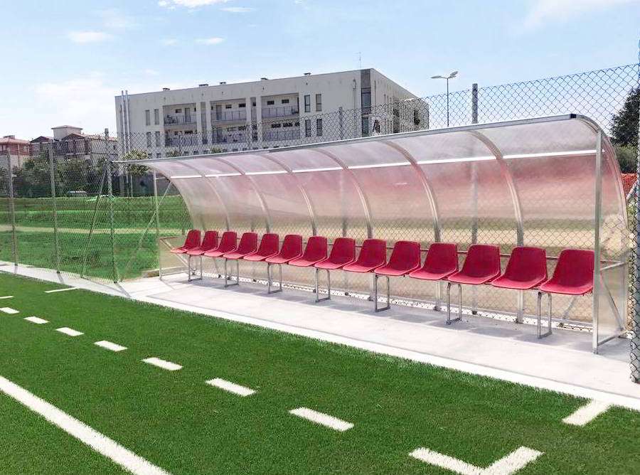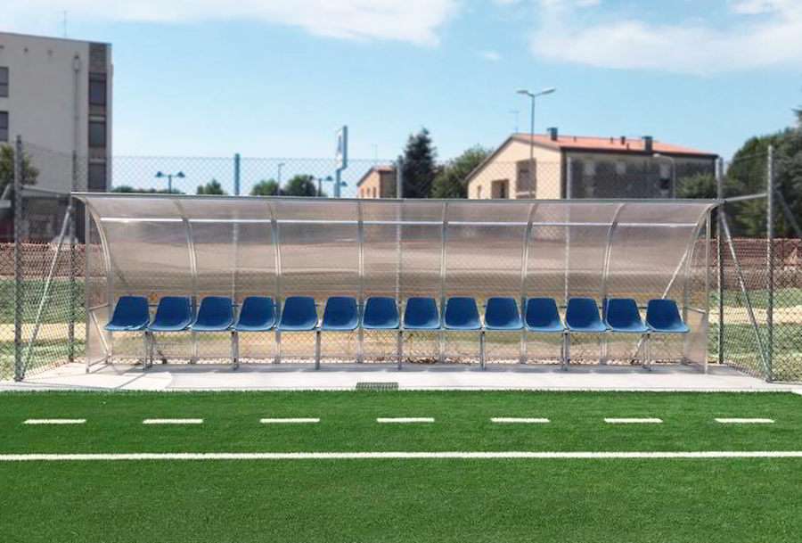 Panels made of opalescent honeycomb polycarbonate, 6mm thick. UV-resistant sides in compact shock-absorbing transparent polycarbonate