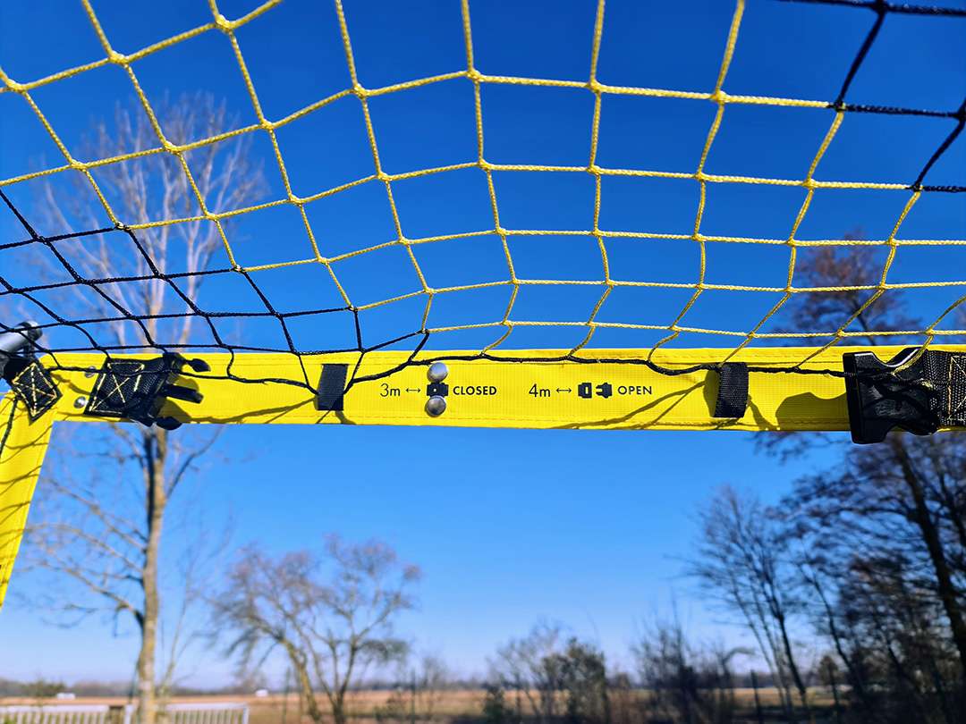 The only mini-goal in the world that modulates on 4 different sizes with the same floor structure, the same net and the same rear hoops. Everything is contained for the goal: no part is added or removed to change the size. This goal is the ultimate versatile equipment. It is modular and will allow you to change your practice, for your training or even at home. There are 4 size possibilities.