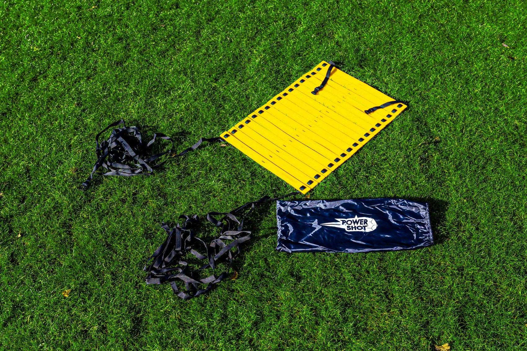 The POWERSHOT agility ladder will allow you to offer your players a great way to develop their physical abilities. It offers adaptability in all circumstances thanks to its modular flat rungs and its length of 8 meters. The POWERSHOT agility ladder has been designed for all indoor and outdoor sports. It allows a multitude of combinations of exercises, from the coordination of the lower limbs to that of the lower and upper limbs. Its system of universal clips allows you to combine it with the rest of the POWERSHOT range. Thanks to its carrying bag you can take it everywhere with you. The POWERSHOT agility ladder: the indispensable accessory for coordination work.