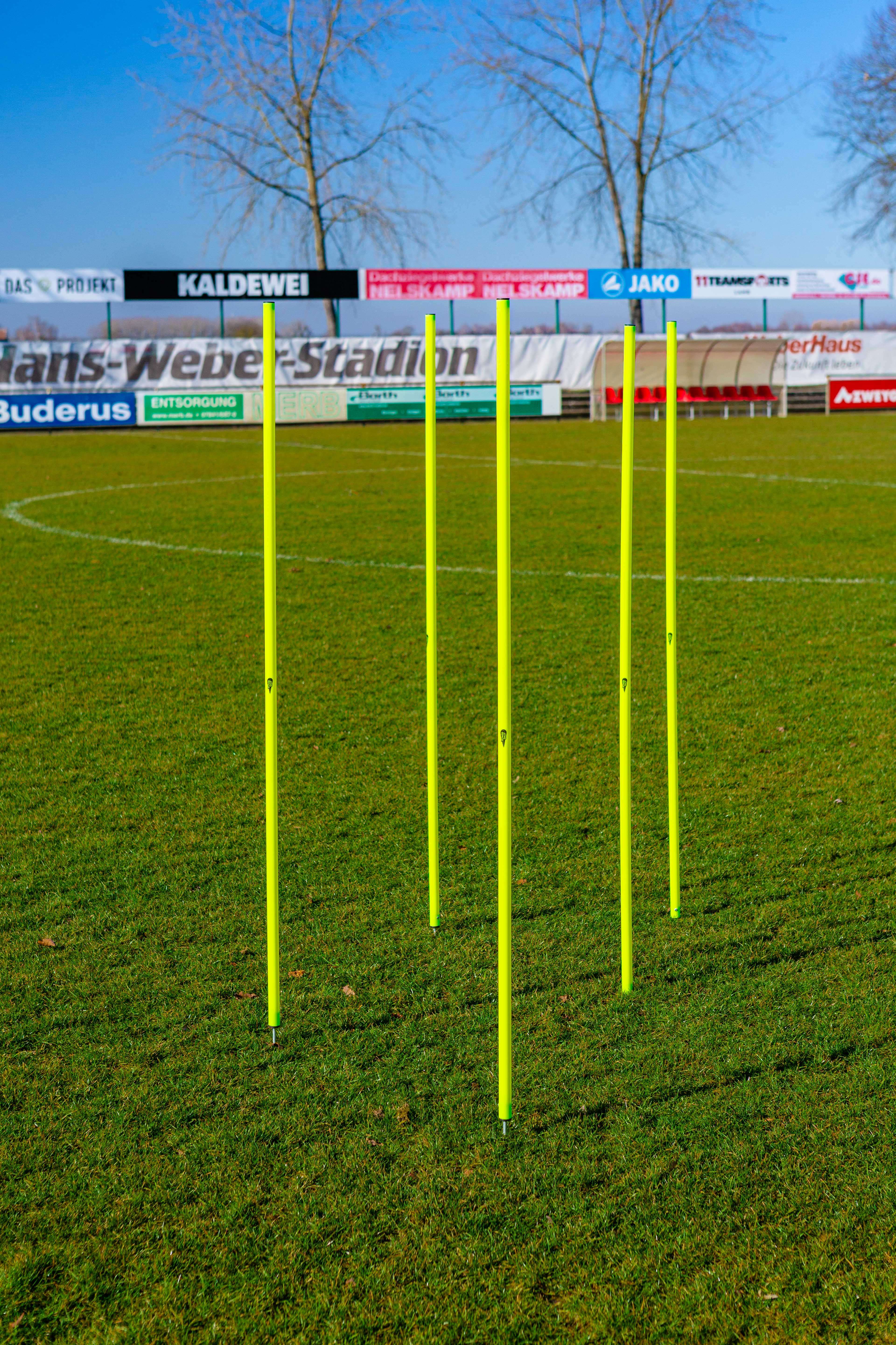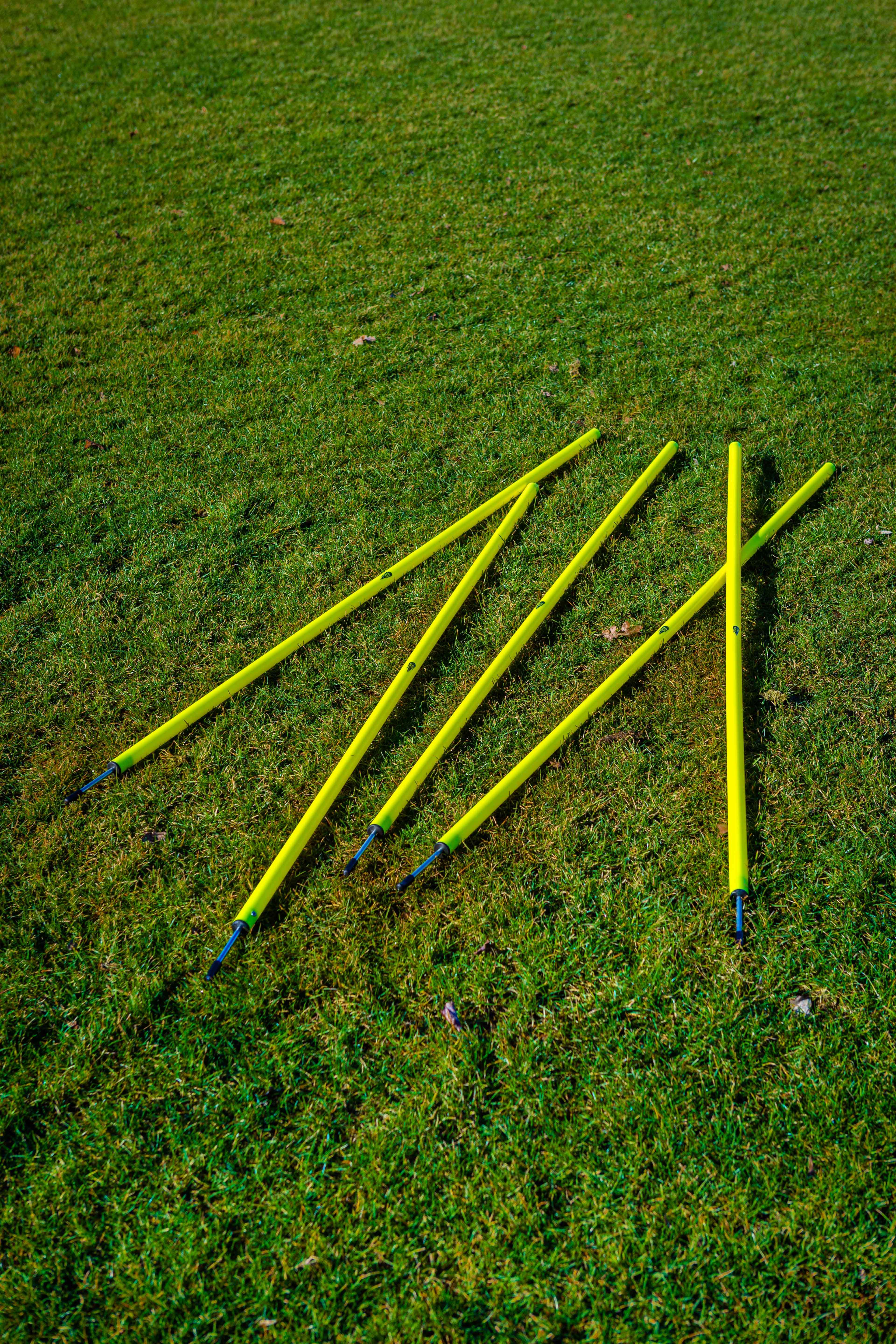 To work your footing, nothing better than the slalom poles. You can vary the exercises: fast and efficient direction changes, speed change to work the cardio. These agility poles are sold by 5. In addition to these stakes you can very well complete your training with cones, agility ladders or other.