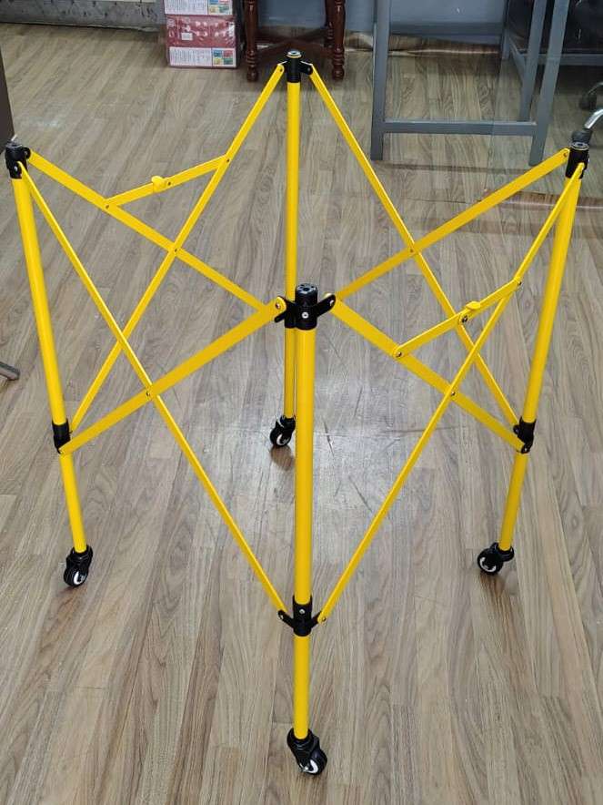 This ball storage basket will hold up to 20 balls and will be usable for all ball sports. It consists of an aluminium structure and a mesh container. It is foldable, which makes it easier to store it empty.