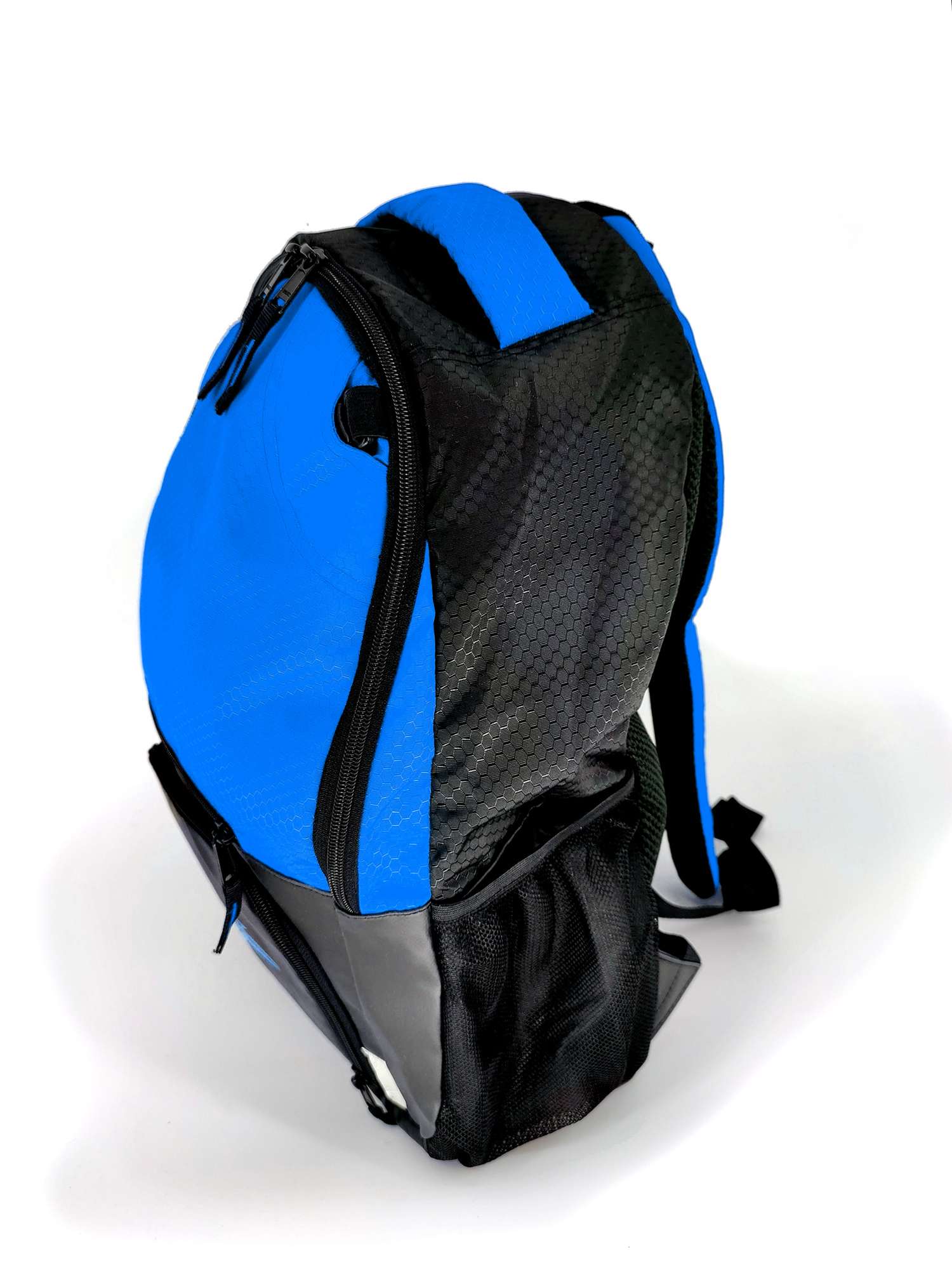 This product has a very large storage space and many features. The bottom part of the bag is water resistant. At the level of the powershot logo is a pocket: can contain a pair of basketball, 3 t-shirt and sports shorts for example. Ability to transport balls thanks to the integrated net. Simply take the net out of the zipped pocket and then hang it with the clips located just above (front part of the bag). Can contain all types of balls. Elastic bands are placed on the sides of the bag for better support Inner computer pocket. Pockets located on the sides for phone and bottle. Ability to carry wires for earphones at the top of the bag. Pelota is made of recycled plastic. It has a capacity of 25 liters and has reflective strips.