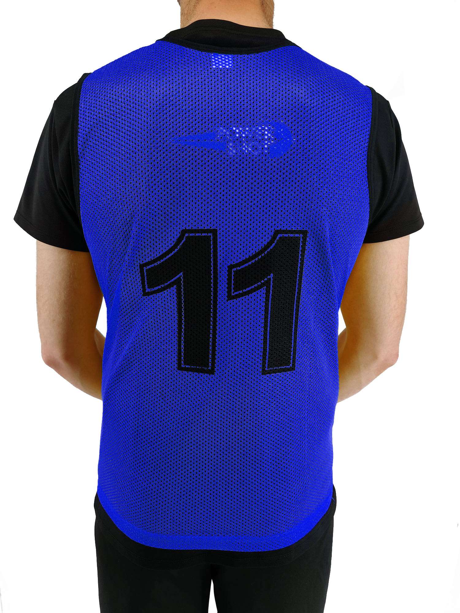This kit of 11 blue bibs is numbered, which will allow to be precise on the tracking of a player's performance. Their composition makes them breathable and strong.