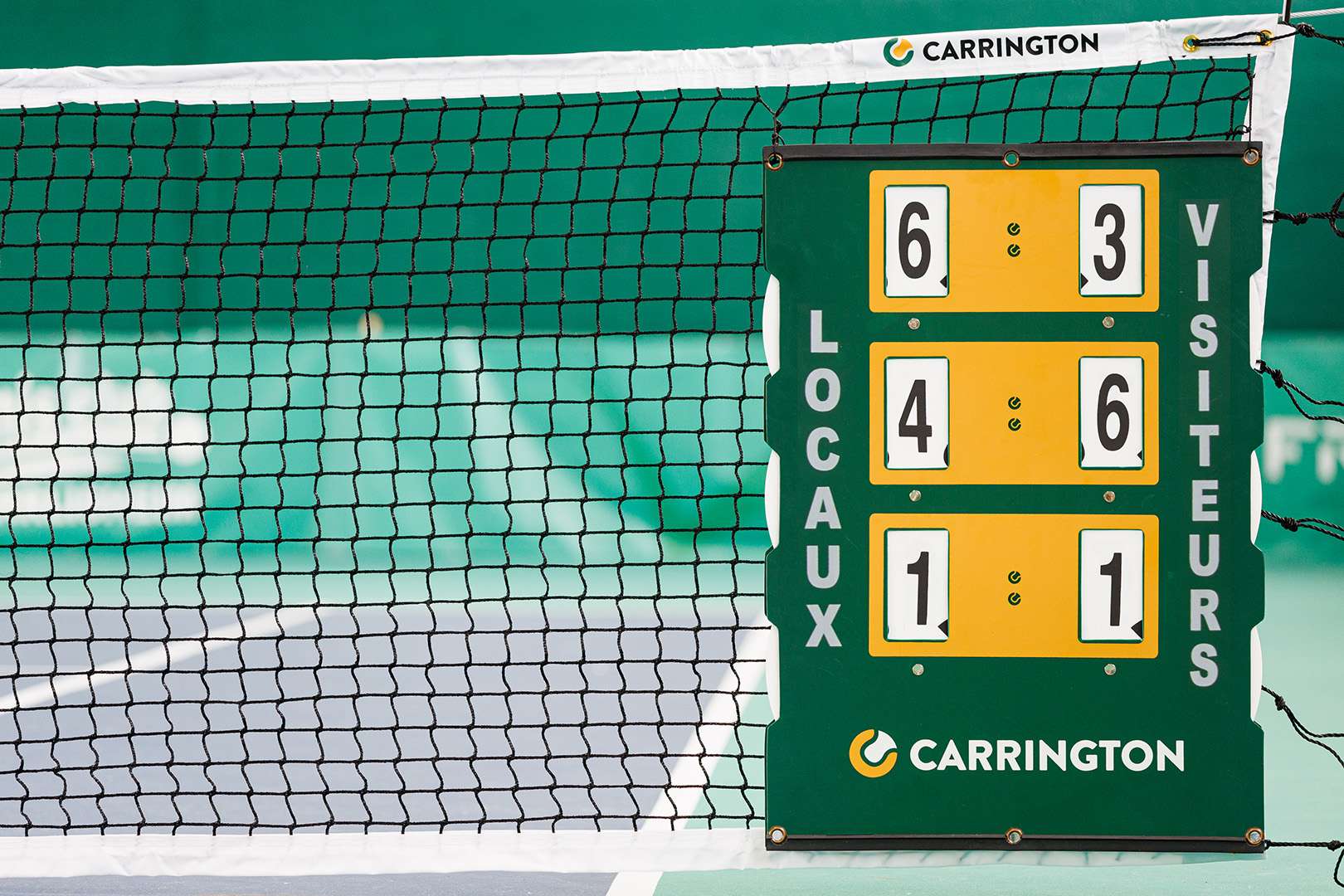These tennis scoreboards can be installed both indoors and outdoors. You can leave them outside all season long, as they are UV-resistant. The mechanism is simple: rotate the discs to display the score on both sides of the board.