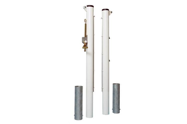 The CARRINGTON® pair of removable round steel poles has been specially designed to meet the standards of tennis practice. The CARRINGTON® posts are excellent durability, in addition with their winch system combined with the net holding rod, they will allow you to exert a perfect tension on the whole net, ending the spaces between the net and the post. You can install them on your grounds, indoor or outdoor.